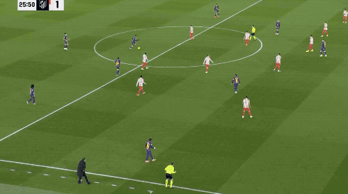 开场之后,亚马尔连续送出外脚背传球,试图搅乱马竞的防线。两队拼抢激烈,攻防转换的节奏相当快。